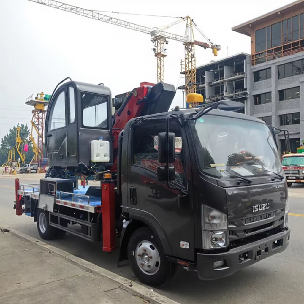 Compared to competitors, this model offers Euro 5 compliance, superior fuel efficiency, and a robust ISUZU engine. The 30-meter working height and versatile telescopic arm design outperform standard aerial lifts, providing a safe and efficient solution for high-altitude tasks.