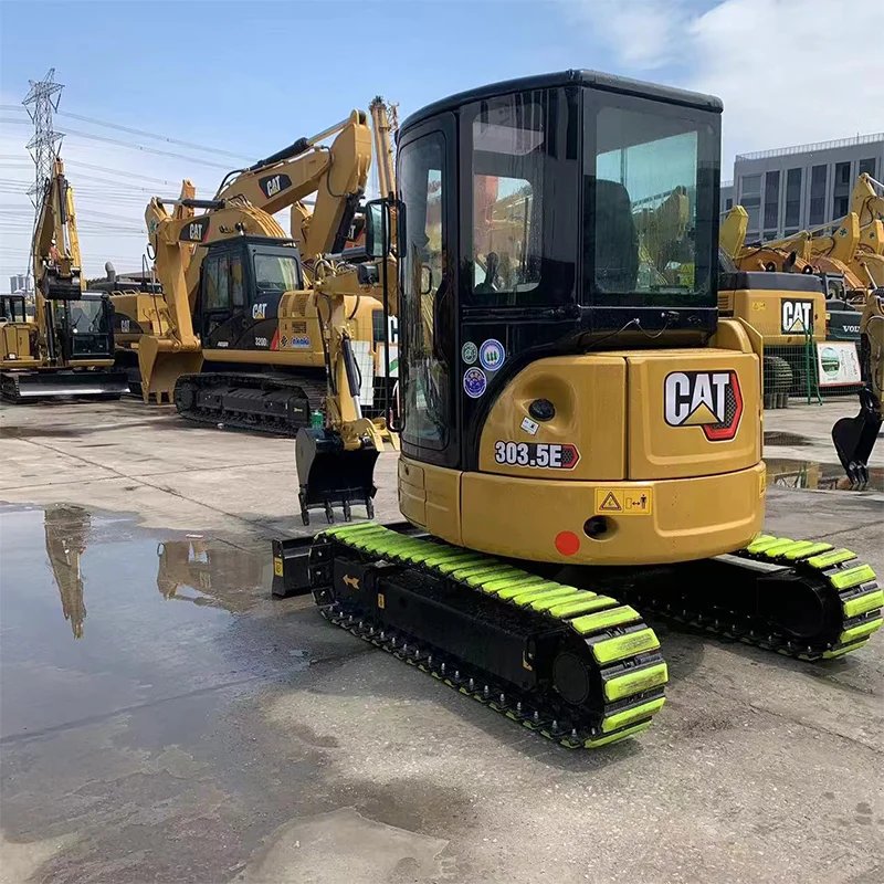 Used Caterpillar 303.5E Mini Excavator, 2023 model with 600 working hours. 3-ton capacity, ideal for construction and excavation tasks. Equipped with Caterpillar C1.8 engine and original hydraulic system.