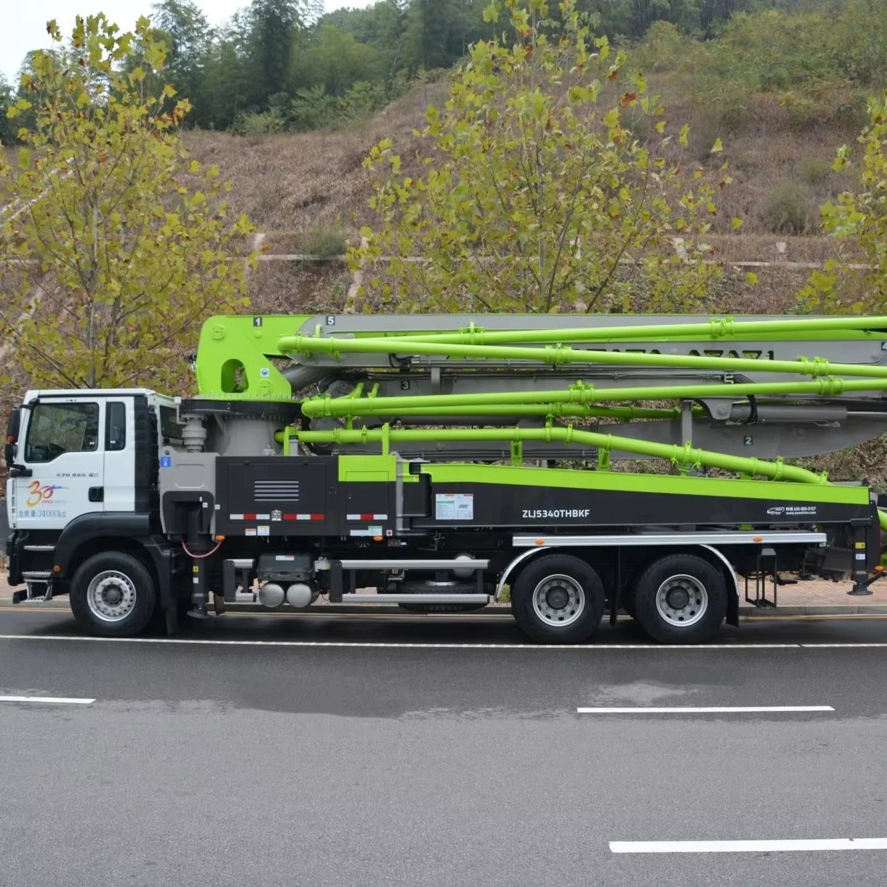 ZLJ5340THBKF 47X-5RZ 3 Axles 47m Concrete Boom Pump Truck with Full Hydraulic Boom, offering excellent adaptability to construction sites and low operating costs.