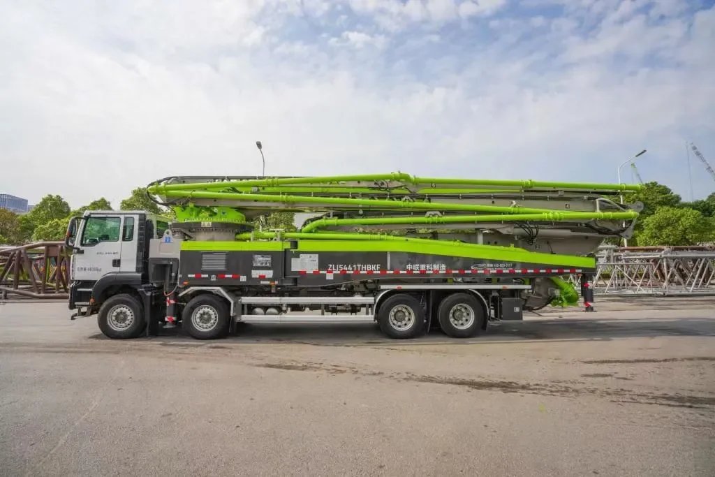 Maximize your construction efficiency with the ZOOMLION 59X-5RZ, a high-performance truck-mounted concrete pump designed for large-scale building projects. Engineered to deliver precision, reliability, and unmatched reach, this four-axle solution redefines productivity on the job site.